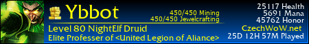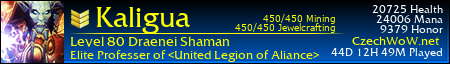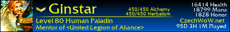 Zacnu hodne zesiroka, usadil jsem se onehda v guilde Inferno. Byla to guilda s velkym G, RL vedel co dela, za tim si sel a nebejt jeho odchodu, asi se do ULoA nikdy nepodivam. Ovsem stalo se, Nagi si sel po svym a s nim odesel duch celeho Inferna. Chvilku jsme to zkouseli bez nej, s tim, ze raidy budu delat ja, par jsem jich udelal, hodne sem se od nej naucil, ale nedostatek lidi a znamejch co Nagi mel, nas dovedl na myslenku. spojit sve sily s ULoA. Par lidi sem od nich / ted uz hrde muzu rikat od nas/ znal, byl to Bombr, jedno z nejlepsich retri/holy paldu co sem znal, Drago, ovladajici a znajici vse co se ji dostane pod ruku a Gumbu. Gumba je pro me kapitola sama pro sebe, kvuli nemu vlastne mam shamana, to jeho sem se ptal kam mam dat talenty, kde se co macka a kde najdu call of water :) Vzdycky mi poradila pomohl a to sem s nim nebyl ani v guilde. Byl jsem rad, ze se stanu soucasti naseho spojeni.