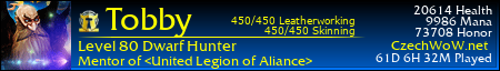 Díky za příspěvek Tobby. Myslím, že jsi mě drobátko přechválil. Dodám už jen to, že jsi pro mě jeden z top hráčů, které jsem na serveru poznal. Klidně můžu napsat, že tě považuji momentálně za lepšího heala než jsem já. Posunul jsi shamana zase o stupýnek výše, tak trošku jsi mi ukázal, co mám vylepšit a co nevidět tě budu v healu zase pěkně prohánět . A co se týče nás dvou, tak to není tajemství, že jsi mi hned padl do oka, co jsem tě trošku poznal. Škoda jen, že více neuctíváš červeno-bílé barvy. Budu na tebe myslet, až poběží 67. minuta a Liverpool povede 4:0